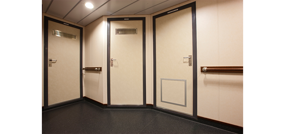 S-One supplies various cabin doors for merchant ships and special ships. S-One cabin doors are built with excellent durability to withstand impacts, and boast top quality and safety. The colors can create a beautiful and elegant interior space. And they can isolate noises above 40 dB. S-One doors, which provides comfort and a pleasant cabin atmosphere, can keep you awat from outside temperature, waves, and winds.